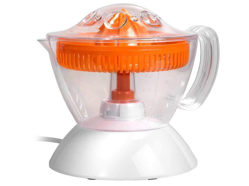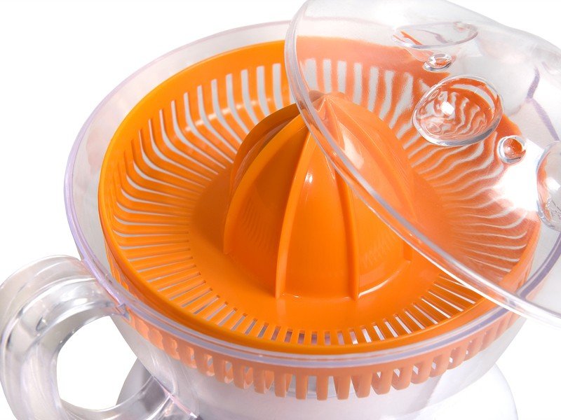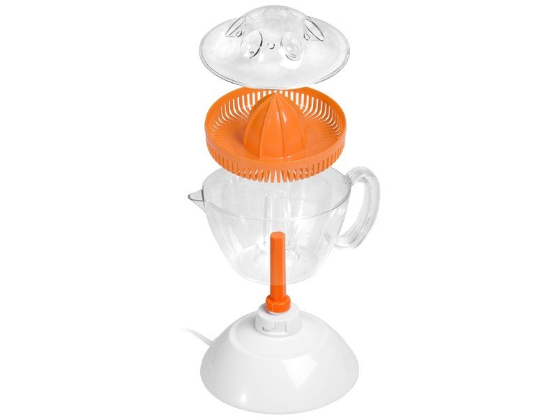 Dzbanek o pojemności 0,5 L wyposażony w podziałkę można bez trudu zdjąć i odstawić a podziałka pozwoli nam na odmierzenie odpowiedniej ilości soku. W zestawie jest również przykrywka która pełni funkcję zabezpieczenia urządzenia przed kurzem lub już wyciśniętego soku w dzbanku. Urządzenie jest bardzo łatwe do rozłożenia a części które mają styczność z owocami można myć w zmywarce.Biało-pomarańczowy