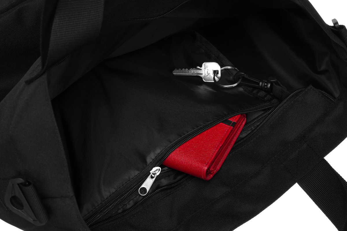 W środku torby znajduje się 1️⃣ dodatkowa kieszeń zamykana na suwak, do której możesz włożyć telefon, portfel, klucze lub inne drobiazgi.