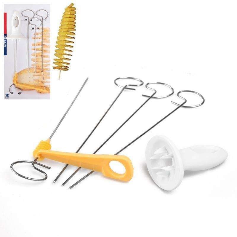 Krajacz do ziemniaków. Dzięki niemu uzyskamy ziemniaczaną spiralę. W zestawie krajacz, 4 szpikulce oraz uchwyt.- Wykrawacz do uzyskiwania ziemniaczanych spirali.- Ziemniaczane spirale smażymy w ...