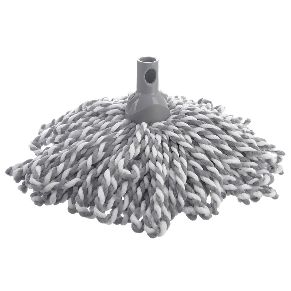 ✅ Chłonne frędzle - Frędzle skutecznie zbierają kurz, brud i nadmiar wody, ułatwiając sprzątanie i pozostawiając powierzchnie czyste. Wykonane z mikrofibry w biało szarym kolorze. Element mocujący mopa wykonany jest z tworzywa w szarym kolorze.
