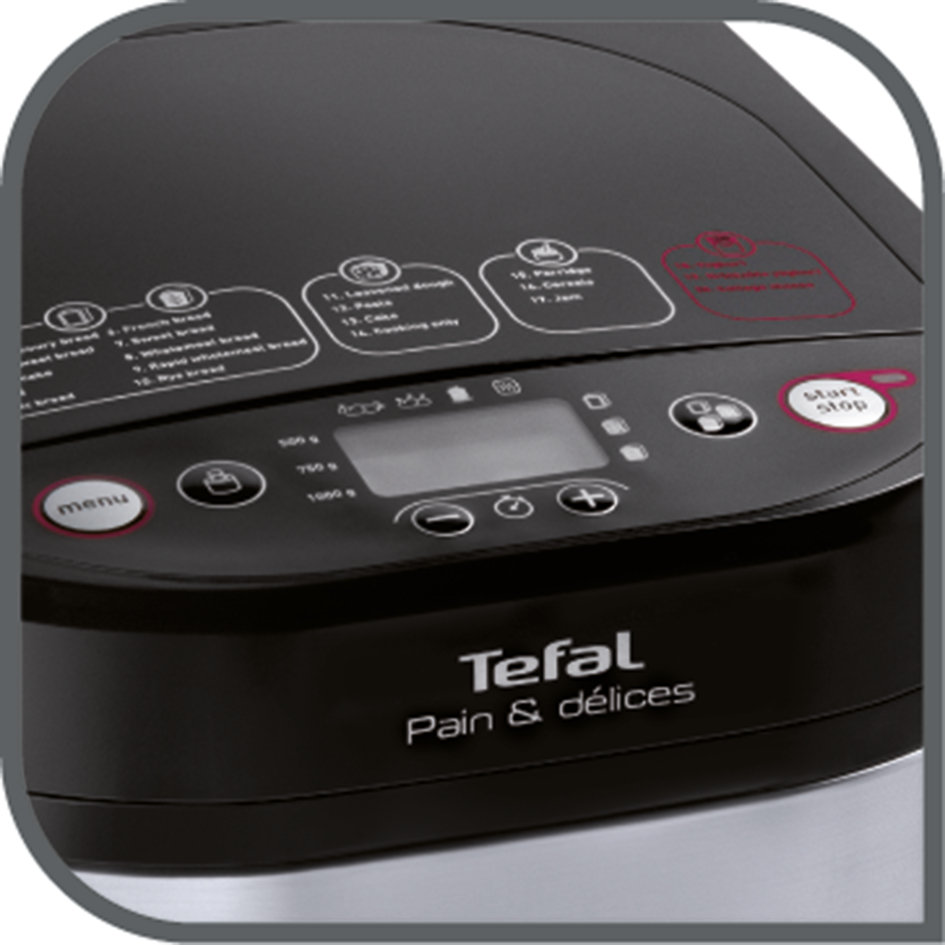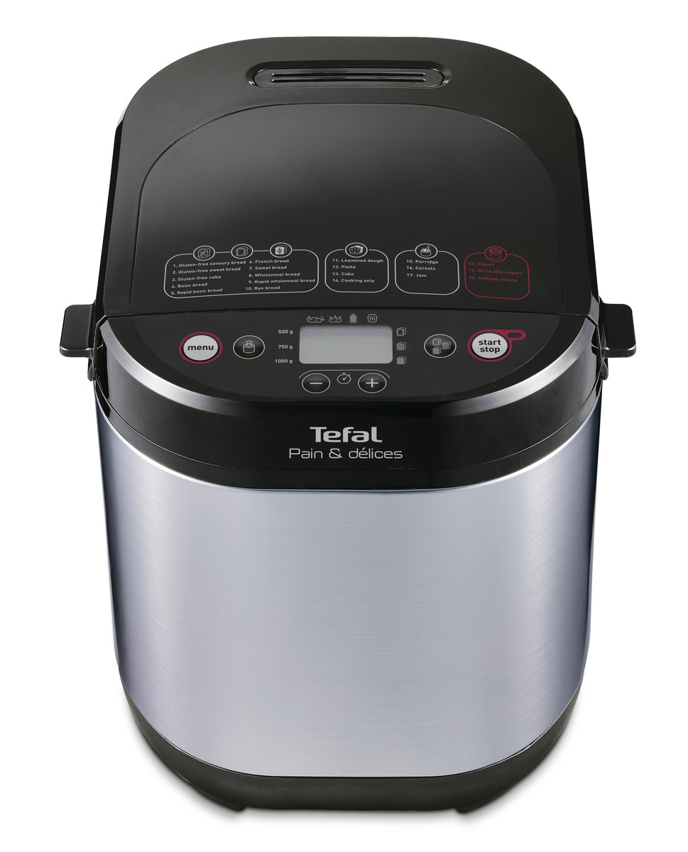 Nieskończone możliwości domowych wypieków! Pain & Délices to najbardziej wszechstronny wypiekacz do chleba marki Tefal. Ciesz się nie tylko świeżym i smakowitym domowym chlebem, ale także pizzą, świeżym makaronem, dżemem, owsianką, płatkami zbożowymi, a także produktami mlecznymi. Wśród 20 opcji znajdują się programy bezglutenowe pozwalające przygotować różne rodzaje chlebów i ciast. Dzięki 3 specjalnym programom i garnkowi do jogurtu o pojemności 1 l, przygotujesz również domowe produkty mleczne (jogurt, jogurt pitny i twaróg). W zależności od swoich potrzeb, masz możliwość wypiekania chleba o różnej wielkości, od 500 g do 1 kg. Dzięki metalowemu wykończeniu wypiekacz Pain & Délices wygląda nowocześnie i elegancko - idealnie dopasuje się do Twojej kuchni! Poza tym możesz cieszyć się ciepłym chlebem, kiedy tylko chcesz, dzięki timerowi, który pozwala ustawić czas wypieku na dogodny dla ciebie moment.