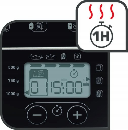 Uruchomienie opóźnione do 15 godzin i funkcja automatycznego utrzymywania ciepła przez 1 godzinę.