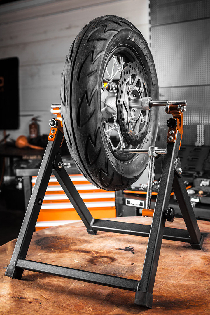 Wyważarka statyczna do kół motocyklowych 10-590 marki NEO to przenośne i składane narzędzie o wadze zaledwie 3,9 kg. Precyzyjny przyrząd służy do wyważania statycznego koła w motocyklach.