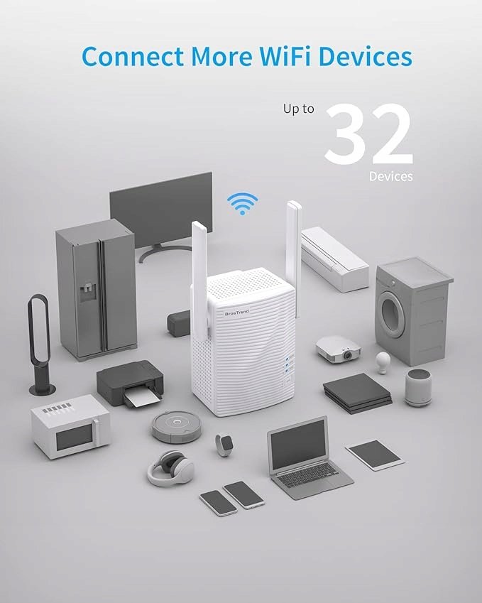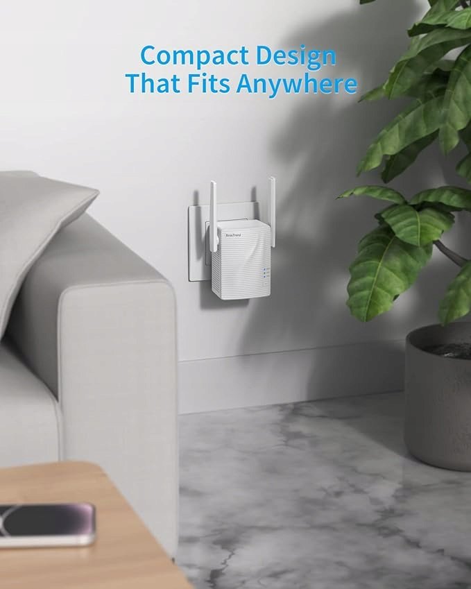 Wzmacniacz sygnału WiFi 1200 Mb/s BrosTrend AC1200Łatwa konfiguracja w kilka sekundNaciśnij przycisk WPS na istniejącym routerze/bramie, a ten przedłużacz WiFi natychmiast rozszerzy zasięg sieci w ...