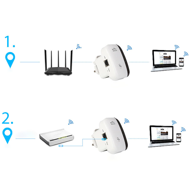 Wzmacniacz sygnału może pomóc wzmocnić Wi-fi, rozszerzyć sygnał na większą odległość i wyeliminuj martwe strefy Wi-fi, dzięki czemu można będzie korzystać z sieci w dowolnym obszarze domu. Nie musisz się martwić słabymi sygnałami ze względu na odległość, ściany i podłogi.