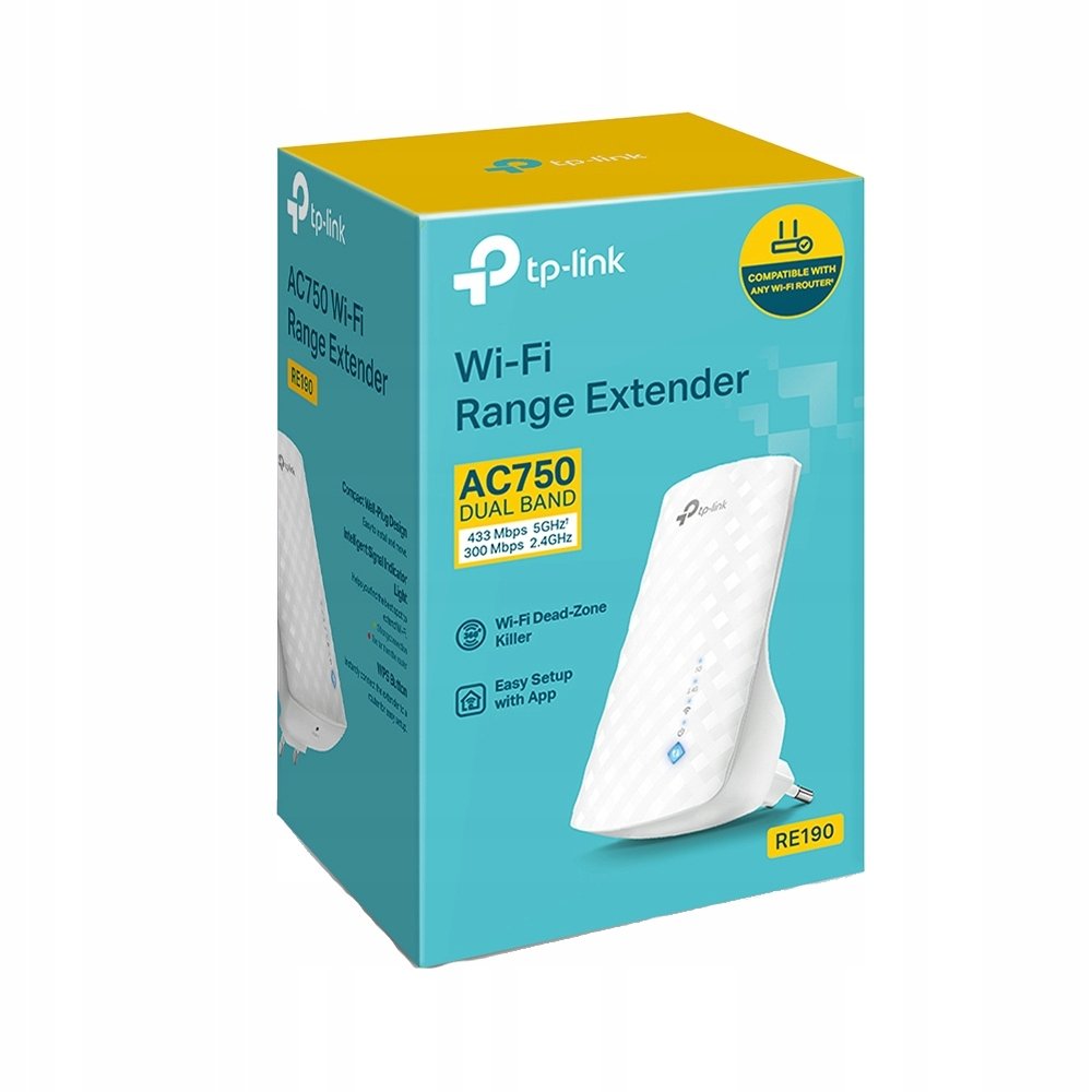 WZMACNIACZ SYGNAŁU ZASIĘGU WIFI TP-LINK RE190 ⭐⭐⭐⭐⭐ Uniwersalny wzmacniacz sieci bezprzewodowej, AC750 Wzmacnia sygnał sieci bezprzewodowej, pozwalając na jego dotarcie do trudno dostępnych ...