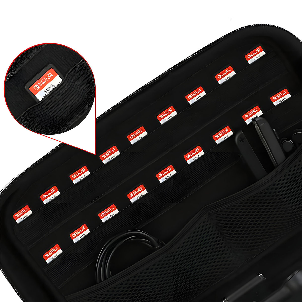 Futerał dedykowany do Nintendo Switch i Switch OLED: Wysokiej jakości futerał wykonany z trwałych materiałów (nylon + EVA), który zapewnia kompleksową ochronę Twojej konsoli i akcesoriów.