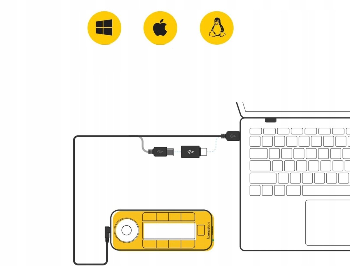 - Xencelabs Quick KeysPilot zdalnego sterowania do tabletu rysunkowego, który oferuje 5 zestawów po 8 przycisków, które umożliwiają 40 programowalnych funkcji na aplikację. Wyświetlacz OLED na Quick Keys pokazuje na pierwszy rzut oka przyporządkowanie poszczególnych przycisków. Umożliwia to tworzenie logicznych grup przycisków dla określonych kroków w przepływie pracy. (Moduł Quick Keys jest również kompatybilny z tabletami graficznymi innych marek.)
