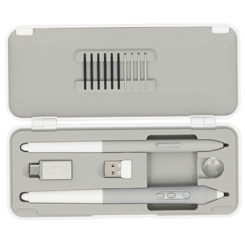 W zestawie są dołączone dwa rysiki w odmiennych rozmiarach. Każdy z nich jest wyposażony w gumkę, obsługuje 8192 poziomów nacisku oraz funkcję pochylania o 60 stopni. Wysoka czułość narzędzi pozwoli Ci poczuć nawet najlżejsze pociągnięcie, dzięki czemu zyskasz większą kontrolę nad tym, co tworzysz. Rysik wyposażony w 3 przyciski daje możliwość płynnego przejścia z rysunku 2D do 3D, natomiast korzystając z cieńszego rysika z 2 przyciskami, możesz mieć wrażenie, że trzymasz w ręku ulubiony ołówek.