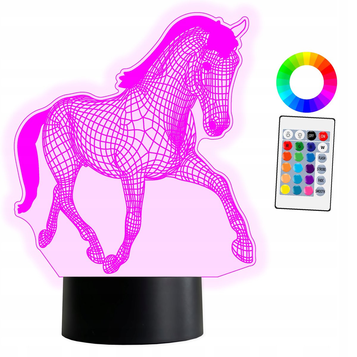 XL Lampka LED 3D Koń 16 kolorów świecenia Grawer imienia / tekstu. Rozmiar XL Pilot w zestawie Polski producent Certyfikat bezpieczeństwa CE Płytka jest idealnie ...
