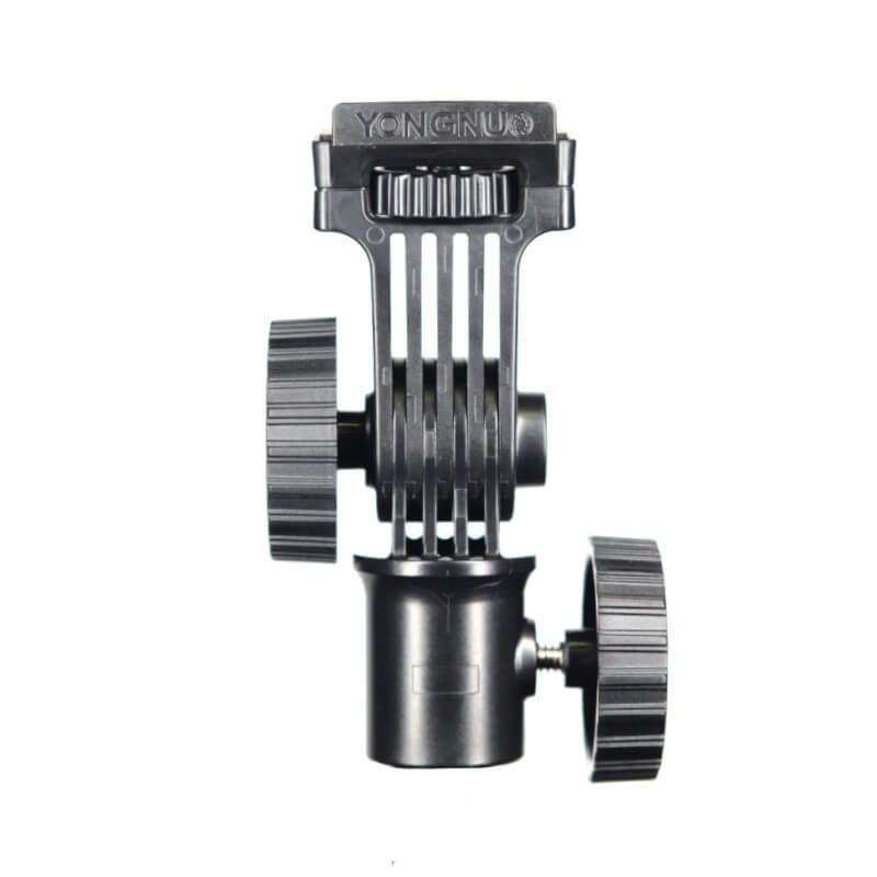Praktyczna, solidna głowica marki Yongnuo do montażu lamp i paneli LED na statywach oświetleniowych. Umożliwia zmianę kąta nachylenia zamontowanego na niej źródła światła. Posiada także praktyczną podporę, stanowiącą dodatkowe zabezpieczenie lampy podczas pracy pod dużym kątem.c