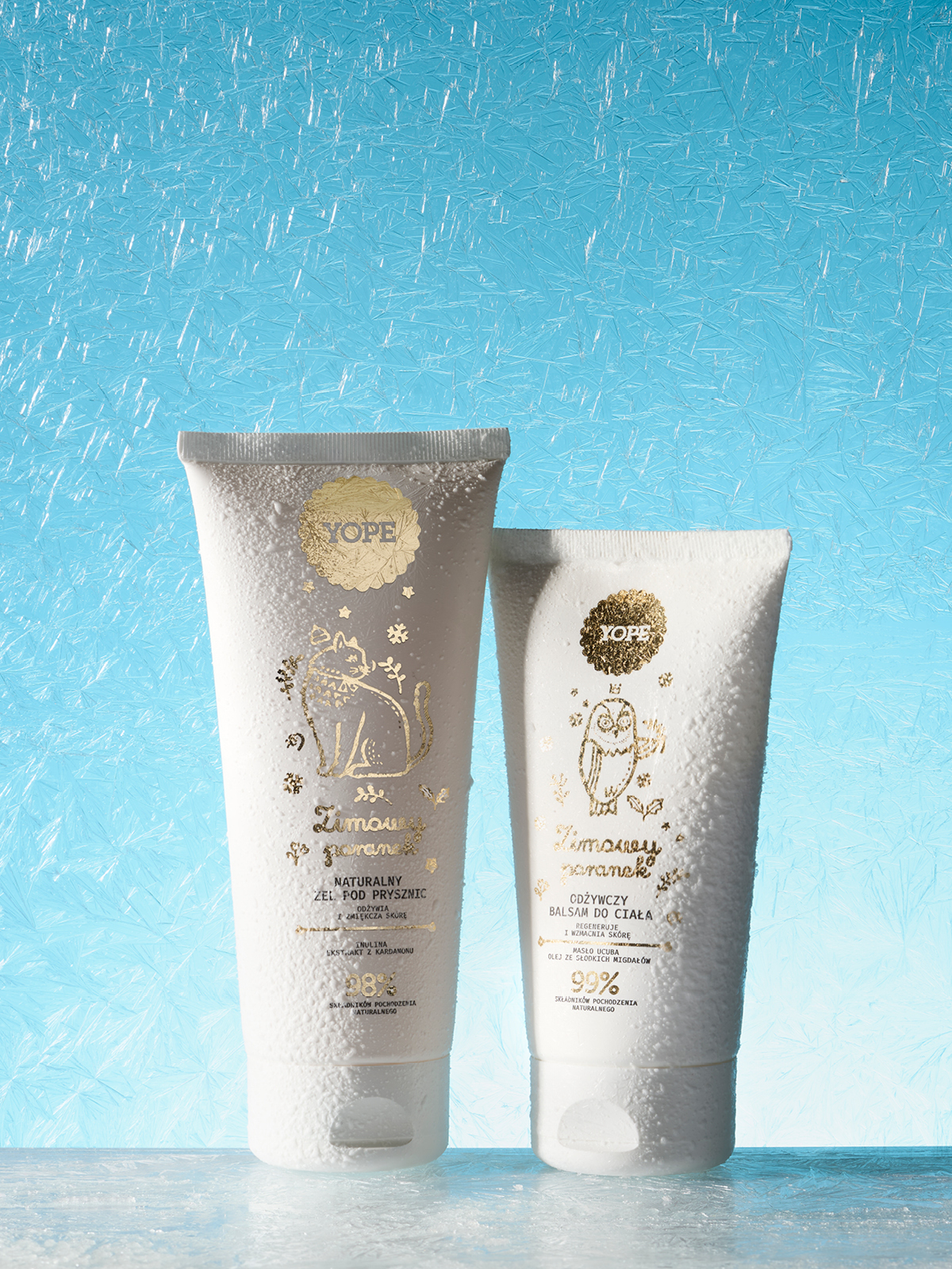 W skład zestawu wchodzi żel pod prysznic oraz balsam do ciała, które razem tworzą harmonijną kompozycję pielęgnacyjną, idealną na mroźne dni.