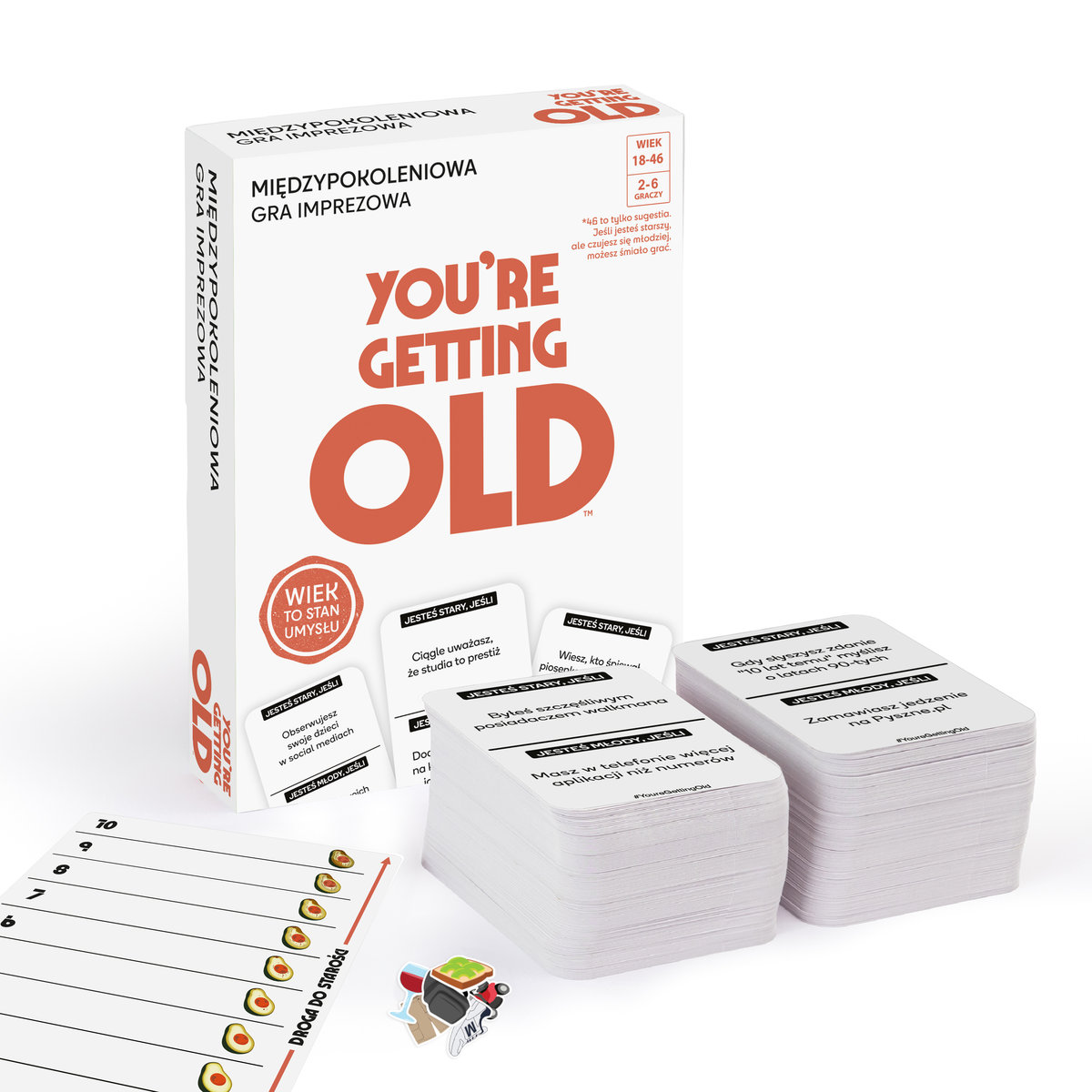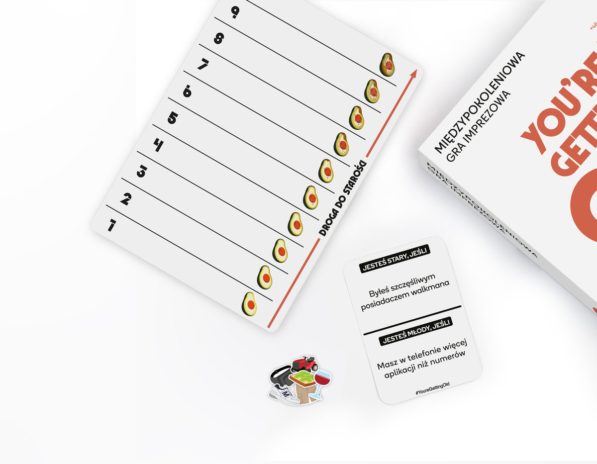 Czy kiedykolwiek zdarzyło Ci się przeglądać listę „TOP 100” na Spotify i pomyśleć: „Kim, do diabła, są ci wszyscy ludzie?” albo stwierdzić, że „20:00 to za późno, żeby odpalać film”? Jeśli tak, to załóż te niemodne rurki, popraw przedziałek, zaopatrz się w jakieś ekstra kraftowe napoje i zbierz przyjaciół – czas usiąść do You’re Getting Old, zabawnej gry imprezowej, która udowadnia, że wiek to tylko liczba… choć czasem wyższa, niż byśmy chcieli.