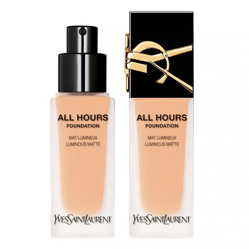 Podkład All Hours z kwasem hialuronowym, o 24-godzinnym pełnym kryciu bez obciążania skóry. Perfekcyjny wygląd skóry, na którym możesz polegać przez cały dzień, całą noc, cały czas. Ulepszona, oddychająca formuła zapewniająca pełne krycie przez 24 godziny. Doświadcz niezwykle zmysłowego doznania na skórze, dzięki pełnemu kryciu, nadającemu efekt drugiej skóry. Formuła zawiera kwas hialuronowy, dzięki któremu zapewnia uczucie nawilżenia przez cały dzień i przynosi korzyści pielęgnacyjne każdego dnia, nawet po zmyciu makijażu. Skóra staje się bardziej miękka, gładsza i nawilżona już po 2 tygodniach stosowania*. Na potrzeby renowacji All Hours, marka YSL opracowała technologię Skin-Fusin, która naśladuje strukturę skóry w celu całkowitego połączenia podkładu ze skórą. Potrójna odporność: odporność na ścieranie, wodoodporność i odporność na pot. Cera pozostaje nieskazitelna i świeża, zapewniając naturalny, matowy efekt przez 24 godziny*.