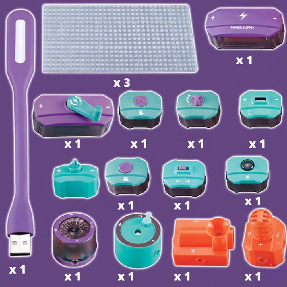 ✅ 45 modułów i 101 eksperymentów = godziny kreatywnej zabawy połączonej z nauką fizyki, logiki i technologii – bez lutowania, łatwo i bezpiecznie.