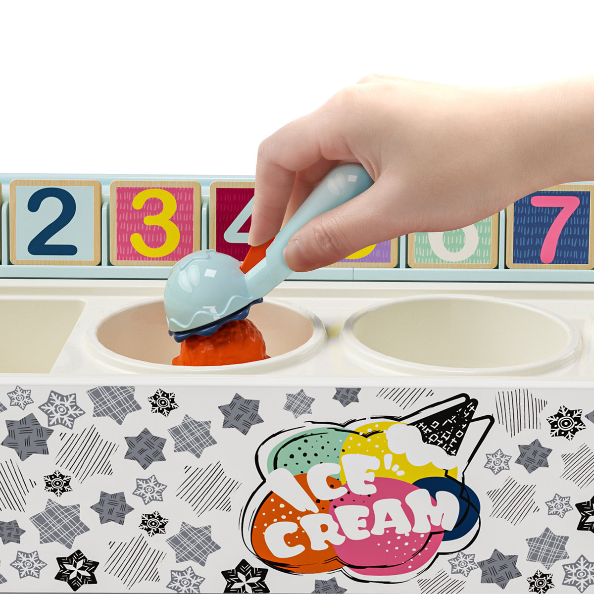 Podczas serwowania pysznych lodów, dzieci odkryją kształty, kolory i liczby. Niezależnie od tego, czy bawią się same, czy z rodzicami i przyjaciółmi – akcesoria cukiernicze i pieniądze są wystarczającym początkiem niesamowitych historii.