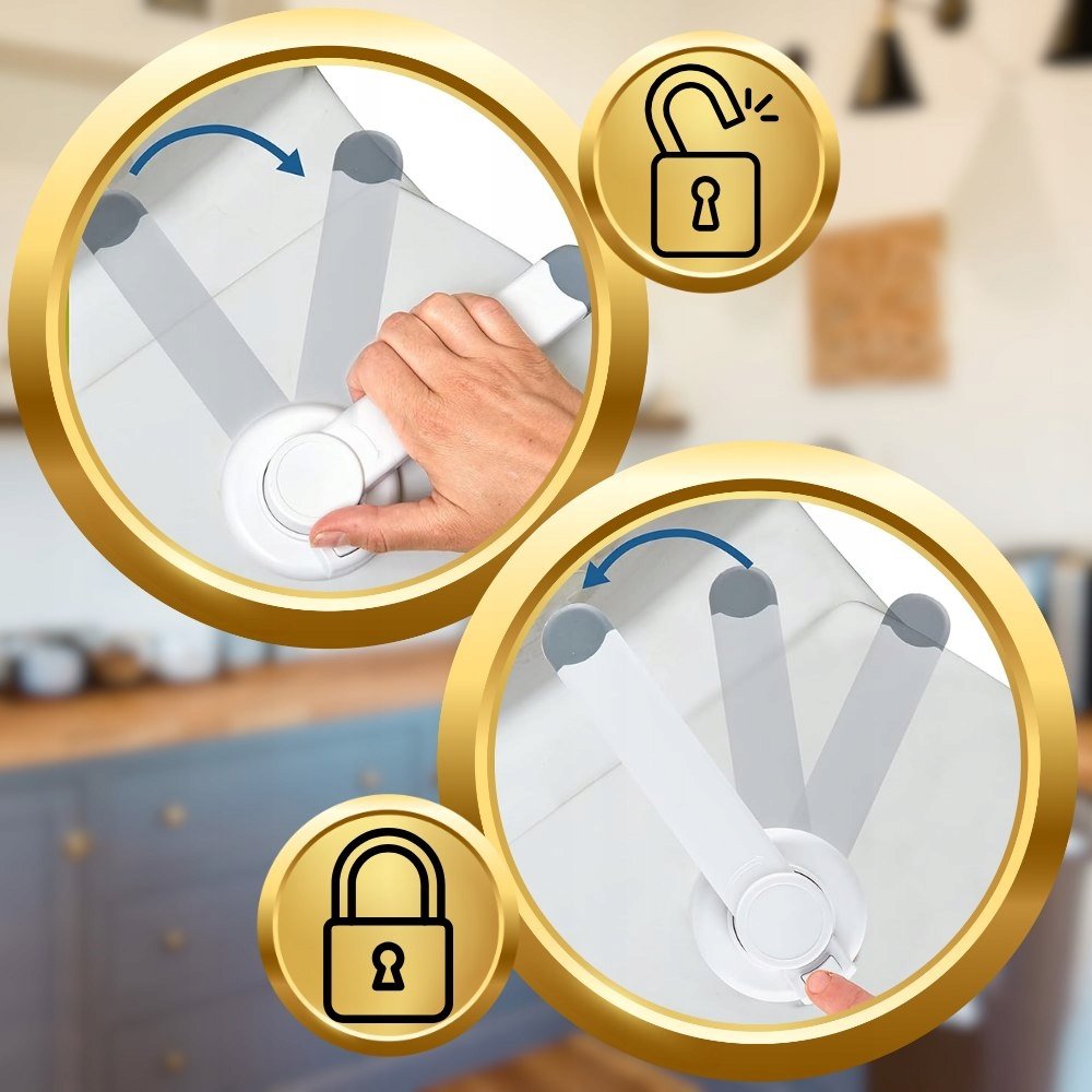 Wystarczą dwa ruchy, by zabezpieczyć i od zabezpieczyć blokadę. Dzięki temu masz pewność, że malec nie będzie w stanie sam ją złamać.
