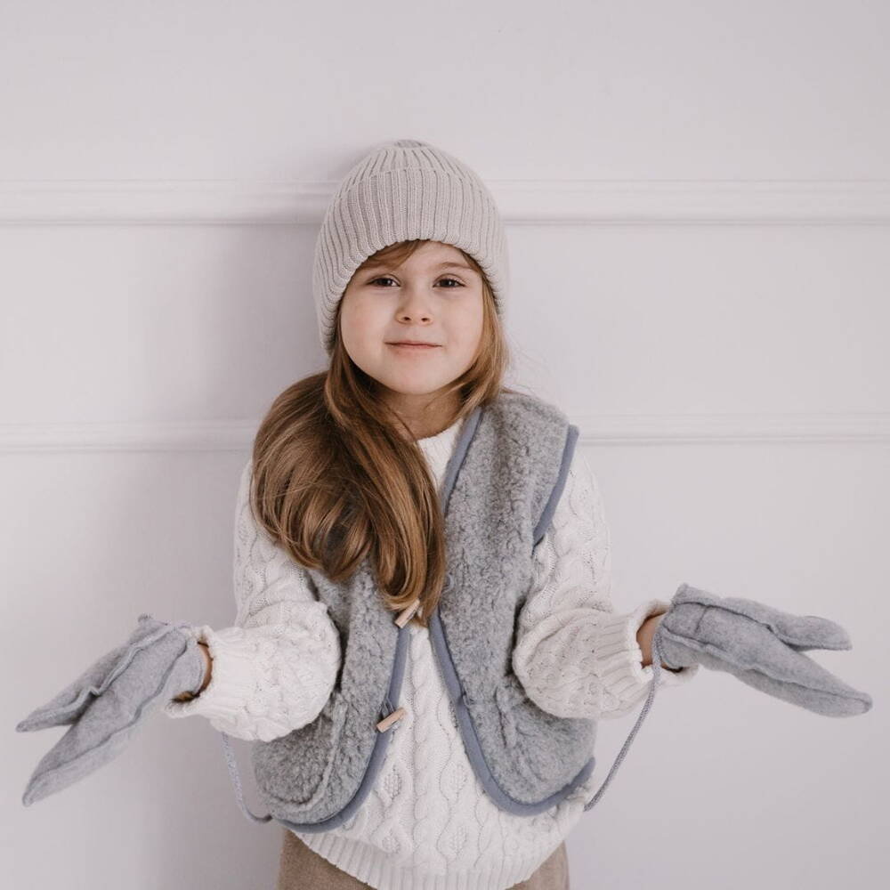 Rękawiczki dziecięce Kolor: GreyRodzaj wełny: szara wełna premium Miękkie, wygodne i ciepłe rękawiczki na sznurku ze ściągaczem bez palców dla najmłodszych dzieci. Rękawiczki posiadają wszywki z ...