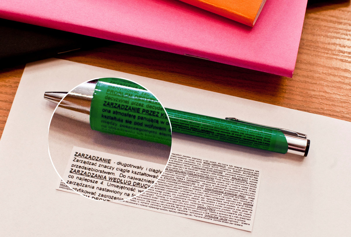 Mając przy sobie 5 długopisów zmieścisz ponad 6 stron A4 standardowego tekstu pomniejszonego do 4px. OMG! :)