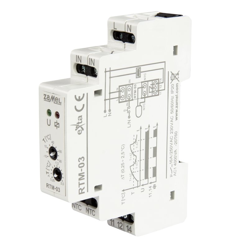 Regulator temperatury jedno modułowy z nastawa histerezy 0,25-2st C RTM-03 Exta Zamel