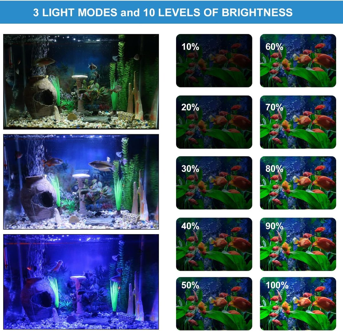 【Automatyczny cykl włączania/wyłączania】Lampa akwariowa do akwarium z wbudowanym timerem i 3 czasami trwania, włącza się i wyłącza o tej samej porze każdego dnia i świeci przez 6 godzin, 10 godzin lub 12 godzin. Nie martw się już o swoje akwarium, gdy jesteś zajęty pracą, podróżą lub spaniem.