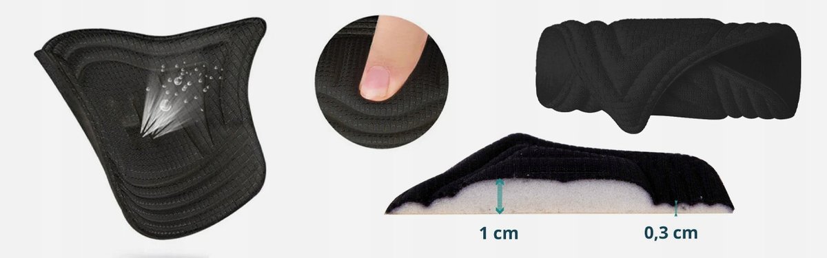 Dostępne są w rozmiarze uniwersalnym, przyklejane do wnętrza buta, nie przesuwają się one podczas chodzenia, wystarczy zerwać folię ochronną i umieścić je w tylnej części buta.