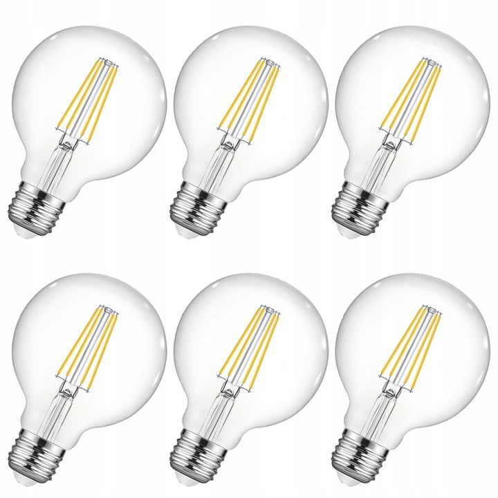 | Nazwa: | Zestaw 6 szt. Żarówka E27 LED filament 4W 400lm ozdobna kula G80 |