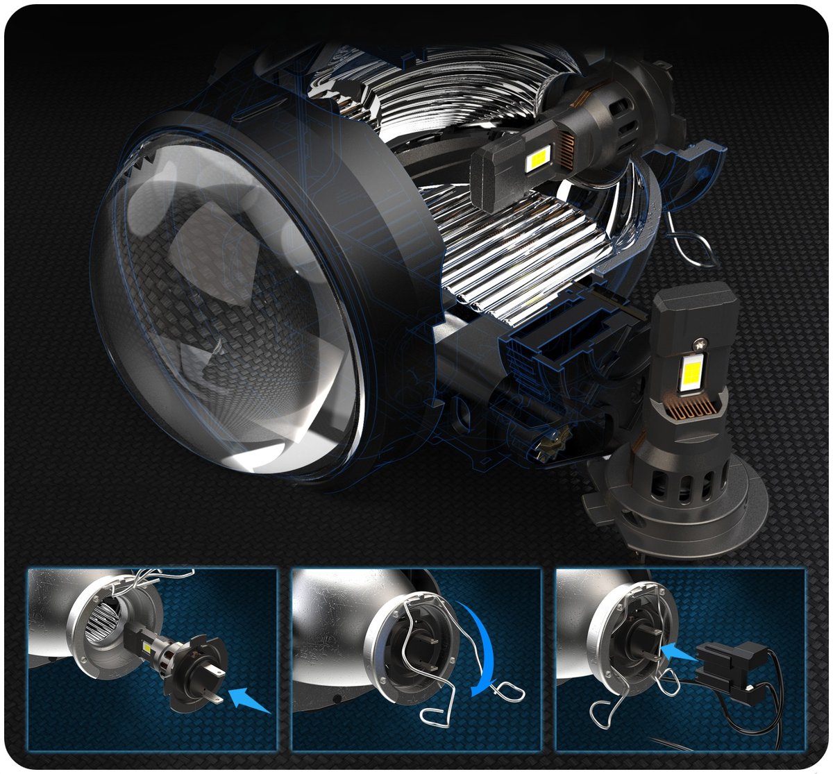 Żarówki wykonane są z wytrzymałego aluminium lotniczego (aluminium 6063), a ich technologiczne wyposażenie obejmuje najnowocześniejsze diody LED z koreańskimi chipami CSP 3570 oraz system CANBUS. Ponadto, w modelach tych zastosowano ulepszone wentylatory i system chłodzenia złożony z żeber z czystej miedzi, co przekłada się na wydłużoną żywotność żarówek.