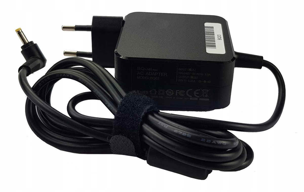 Zasilacz BQUAL PROdedykowany jako zamiennik zasilaczy Lenovo 20V 2.25A 45W, (wtyk: okrągły 4.0-1.7mm). Idealnie dopasowana ładowarka sprawnie naładuje Twoje urządzenie w domu, w biurze i w podróży