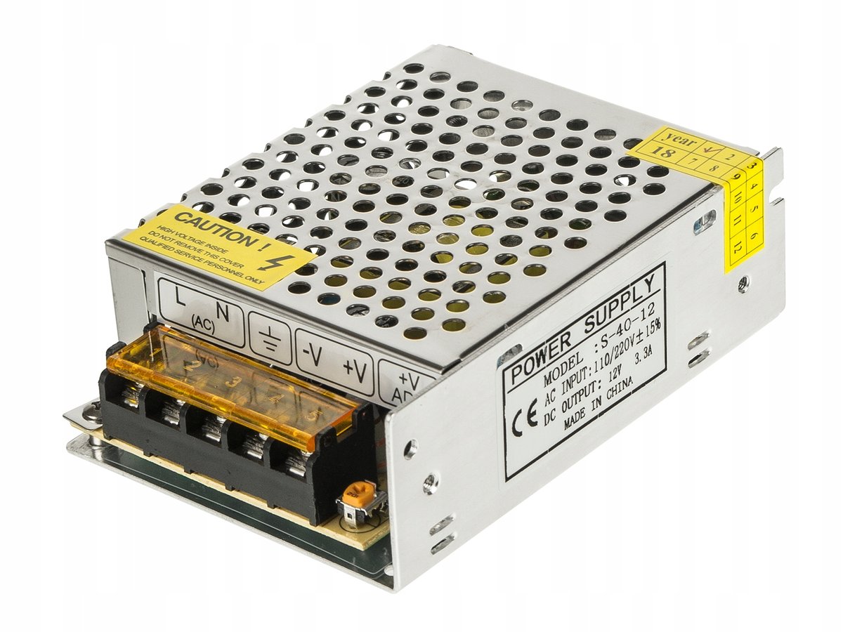 | Nazwa: | Zasilacz LED 12V 40W 3,3A IP20 Modułowy Do Taśmy LED CCTV Transformator |