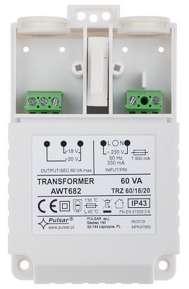 ZASILACZ NAPIĘCIA ZMIENNEGO AWT-682 PULSAR Napięcie zasilania: 230 V AC ; Napięcie wyjściowe: 18 V AC, 20 V AC ; Wydajność prądowa zasilacza: 3.3 A @ 18 V AC, 3 A @ 20 V AC ;