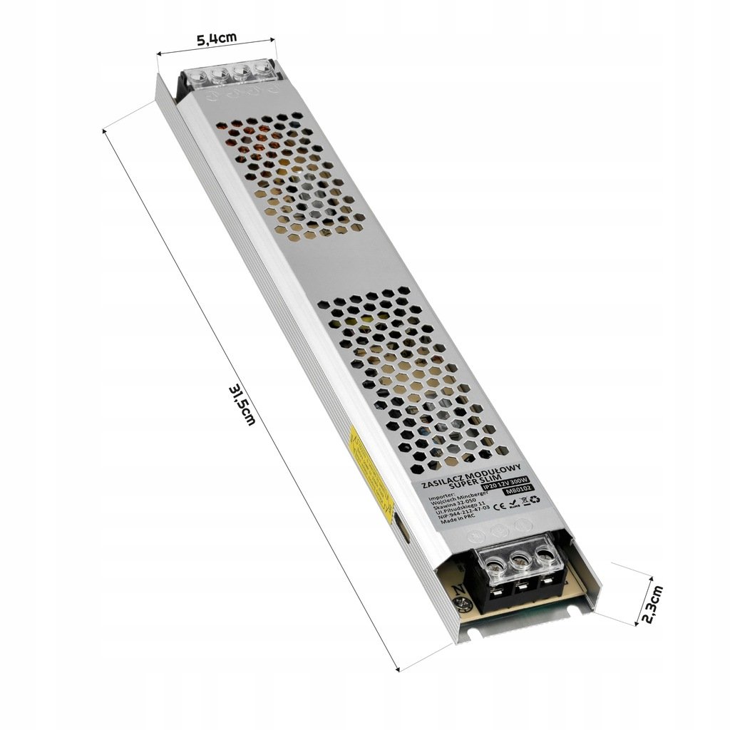 ✅ Maksymalna moc 300W: Idealny do zasilania średniej długości taśm LED, zapewniając ich bezawaryjne i stabilne działanie.