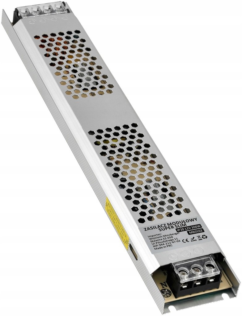 Zasilacz LED 12V 300W 25A IP20 Montażowy Do Taśmy LED Slim Bardzo Wąski to doskonały wybór dla średniej wielkości instalacji LED, wymagających niezawodnego i stabilnego zasilania. Dzięki kompaktowej, smukłej budowie, zasilacz doskonale sprawdzi się w przestrzeniach o ograniczonej dostępności.