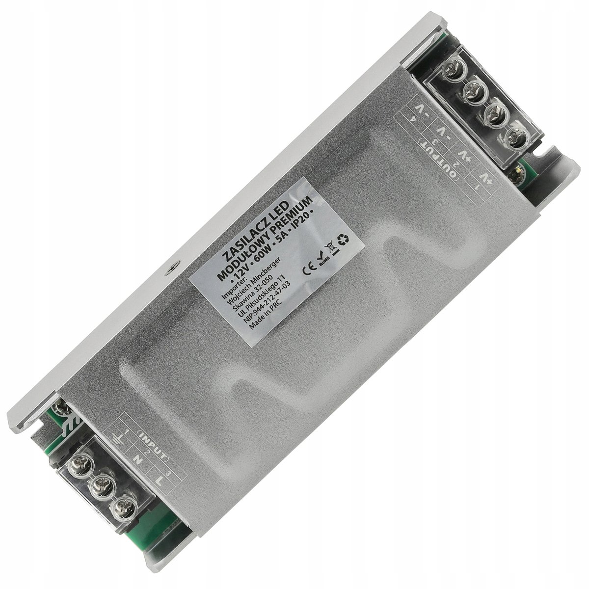 ✅ Moc wyjściowa 60W / 5A – idealna do zasilania taśm LED o długości do 5 metrów