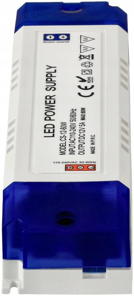 | Kod producenta: | Zasilacz LED 12V Do Taśmy LED 60W 5A IP20 |