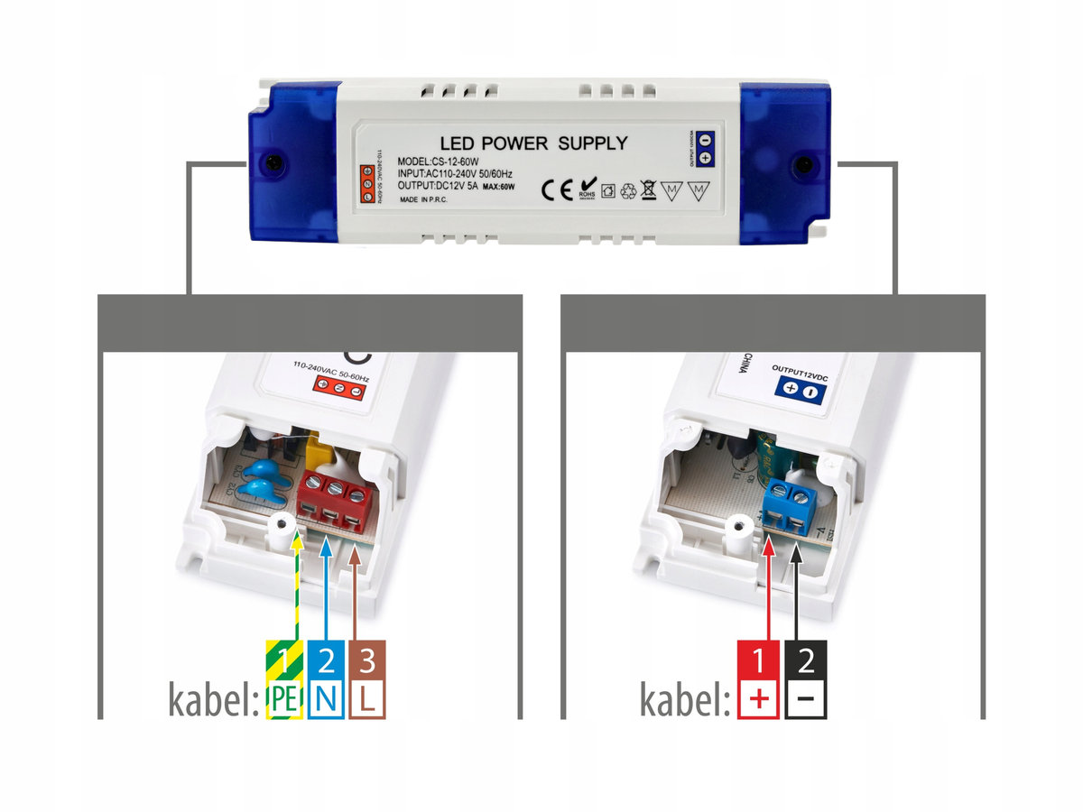 ✅ Moc 60W – wystarczająca moc dla średniej wielkości instalacji oświetleniowych, gwarantująca stabilne działanie systemu LED.
