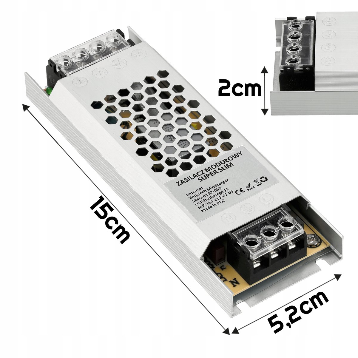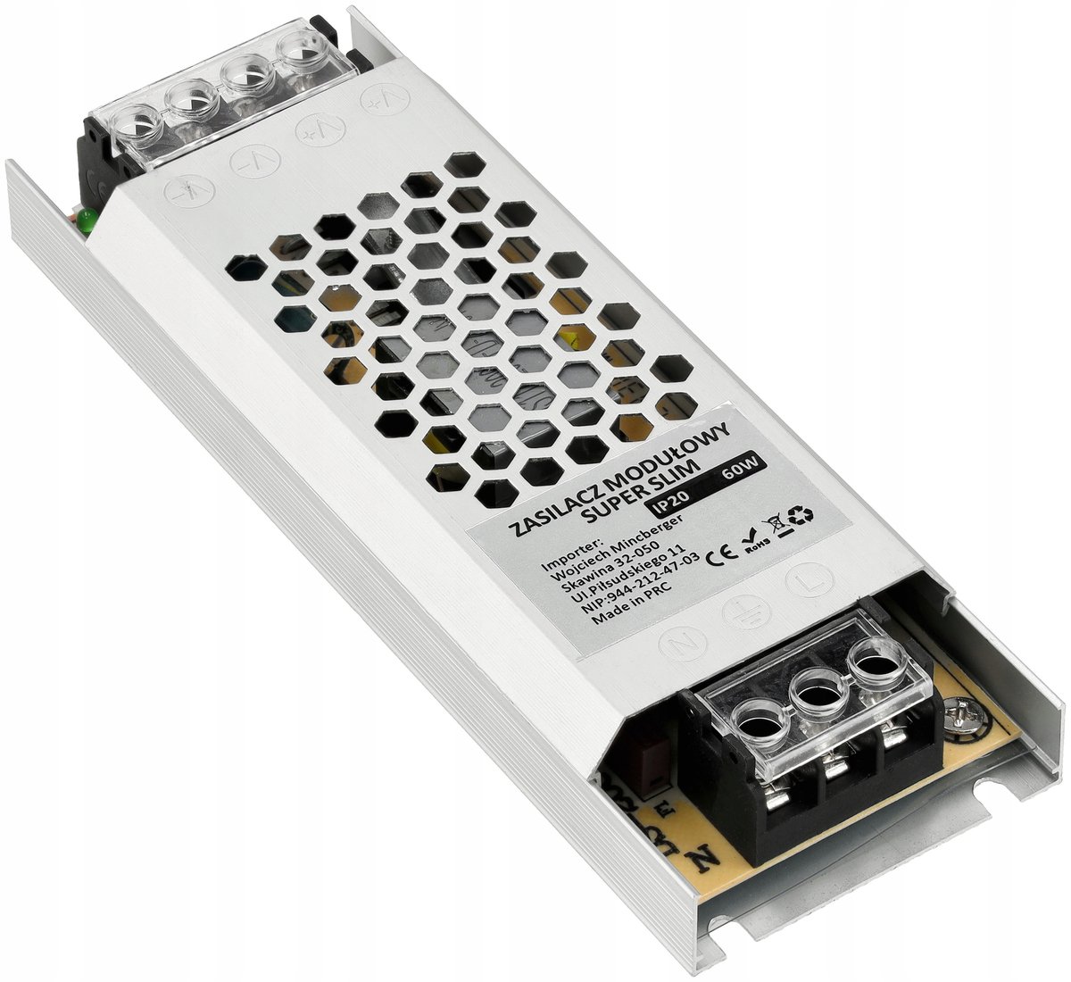 Zasilacz LED 12V 60W Super Slim 5A IP20 to wysokiej jakości transformator modułowy, przeznaczony do zasilania taśm LED 12V.
