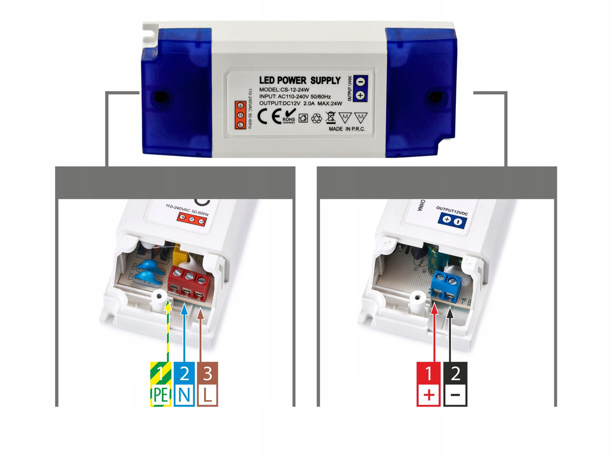 ✅ Napięcie wyjściowe 24V DC – zapewnia stabilne zasilanie dla urządzeń LED, w tym taśm LED oraz innych produktów wymagających napięcia 24V.