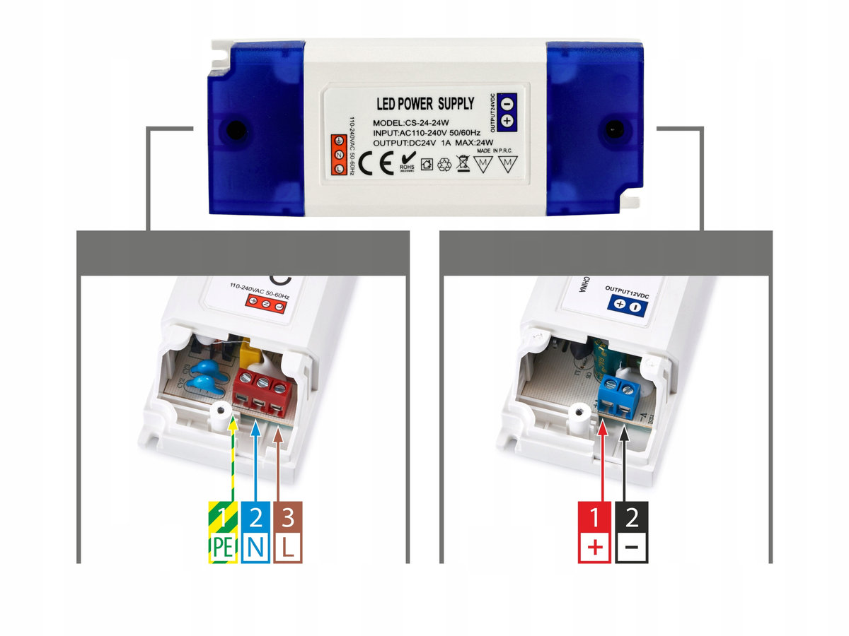 ✅ Napięcie wyjściowe 24V DC – zapewnia stabilne zasilanie dla urządzeń LED, w tym taśm LED oraz innych produktów wymagających napięcia 24V.