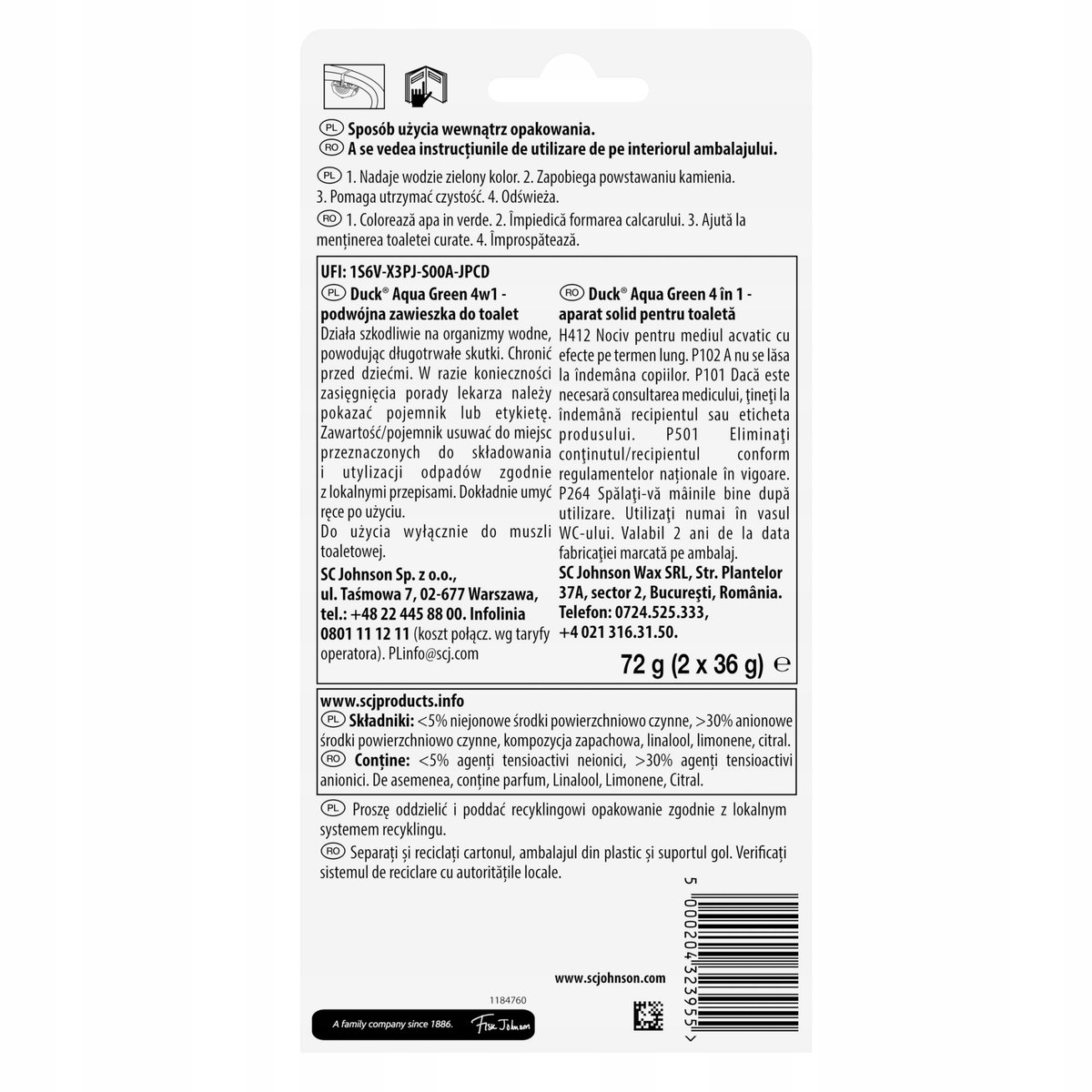 - 3x Duck Aqua Green 4w1 - Podwójna Zawieszka do Toalet (6x36 g)