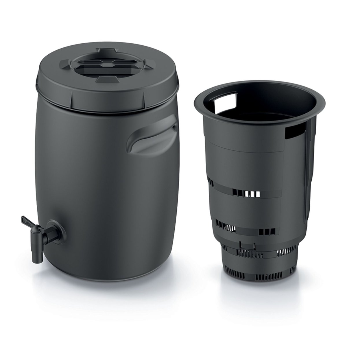 Tradycyjne baniaki na nawóz lub kompostowniki często są schowane, bo ich wygląd oraz zapach nie jest zbyt przyjemny. Tutaj nie mamy tego problemu ponieważ całość wygląda bardzo estetycznie. Również nabieranie nawozu jest bezproblemowe i higieniczne dzięki kranikowi.