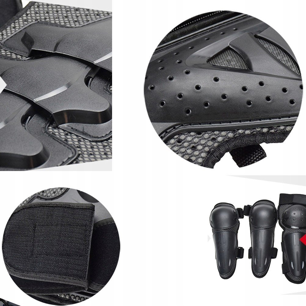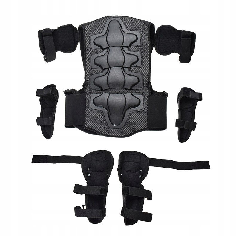Lekka, ale wytrzymała konstrukcja z piankową warstwą buforową o wysokiej gęstości oraz zewnętrzną osłoną z tworzywa PP skutecznie chroni przed uderzeniami, otarciami i upadkami. Komplet zawiera kamizelkę na klatkę piersiową i plecy, nakolanniki oraz nałokietniki, zapewniając kompleksową ochronę newralgicznych miejsc ciała.