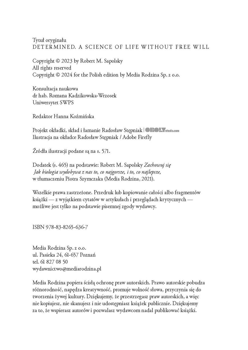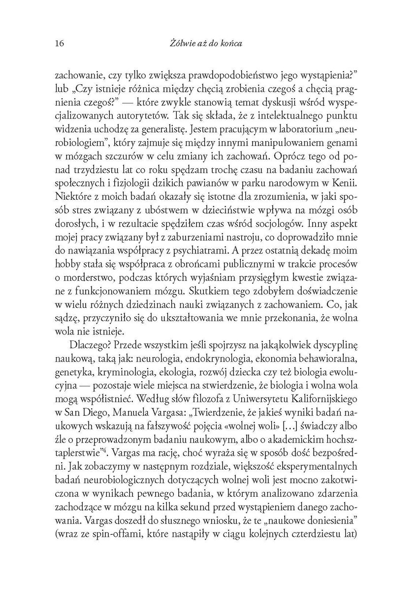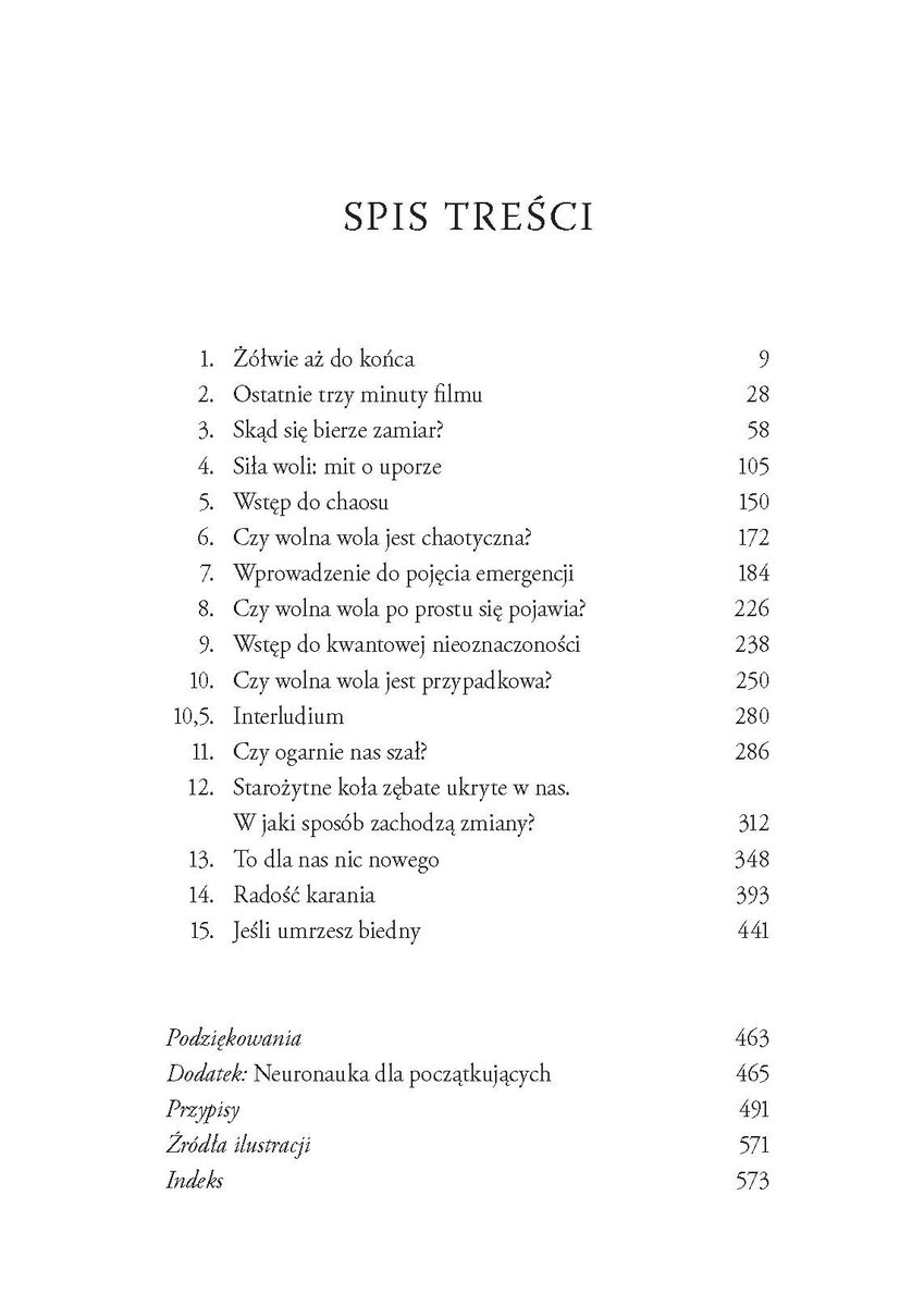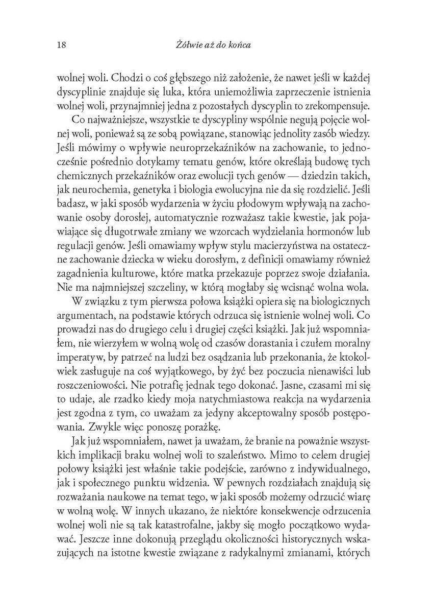 Wspaniała synteza tego, co wiemy o funkcjonowaniu naszej świadomości, o ścisłym związku między rozumem a emocjami oraz między bodźcem a reakcją, która ma miejsce w danej chwili lub też przez całe nasze życie. Sapolsky po kolei rozprawia się ze wszystkimi głównymi argumentami sugerującymi istnienie wolnej woli i obala je, przedzierając się ścieżką przez gąszcze nauki o chaosie i złożoności oraz fizyki kwantowej, a także dotykając niektórych dzikich wybrzeży filozofii.