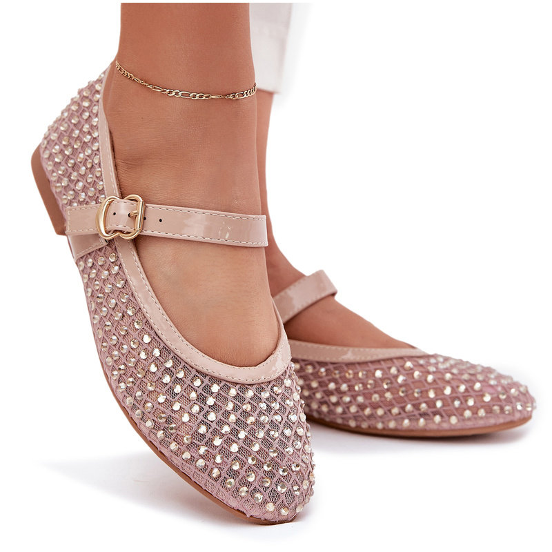 Zdobione Baleriny Damskie Z Paskiem I Klamrą Beżowe Avirae