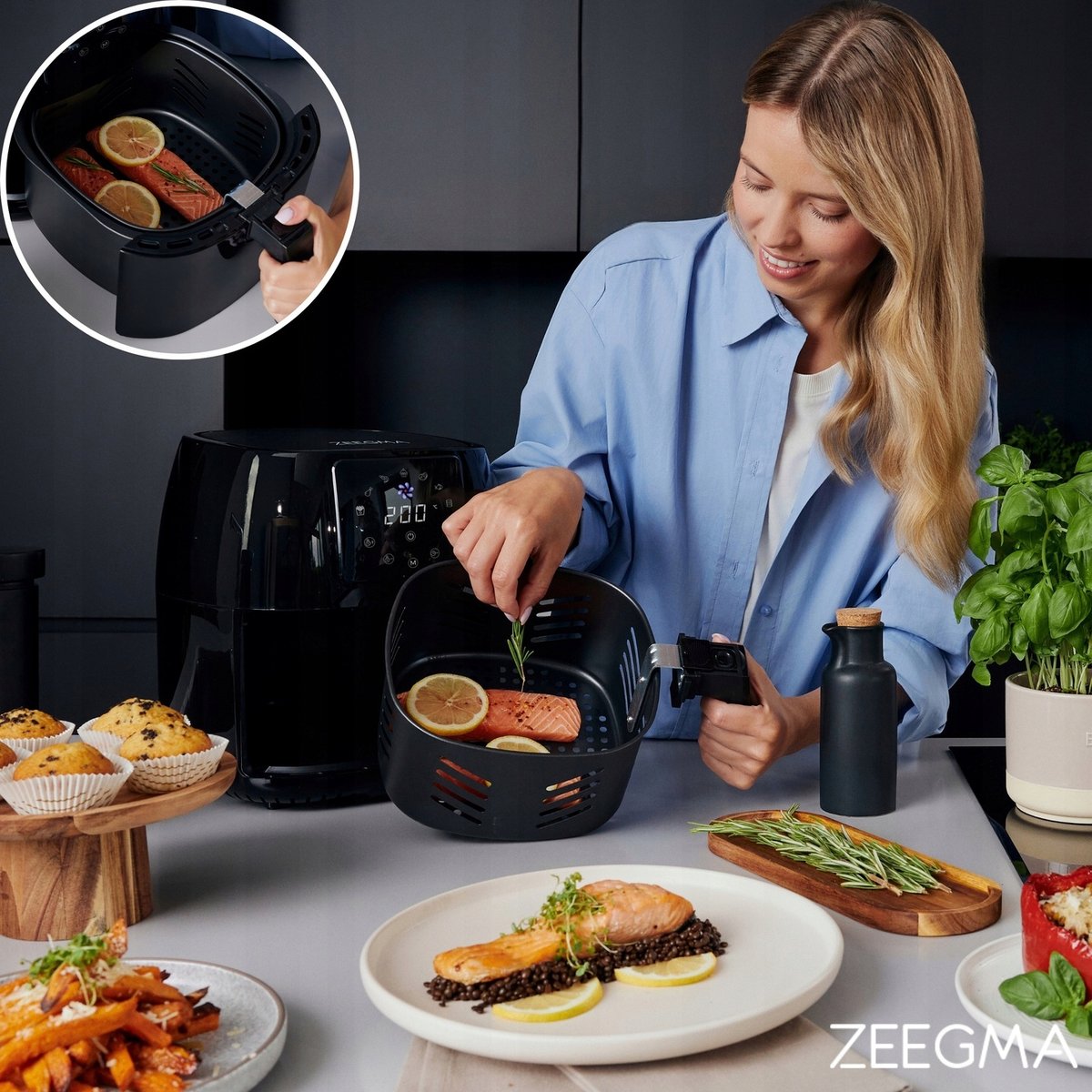 Frytkownica Zeegma Knapper Pro została wyposażona w funkcję konwencji powietrza, co oznacza, że do przygotowania potrawy wystarczy tylko łyżka oleju!