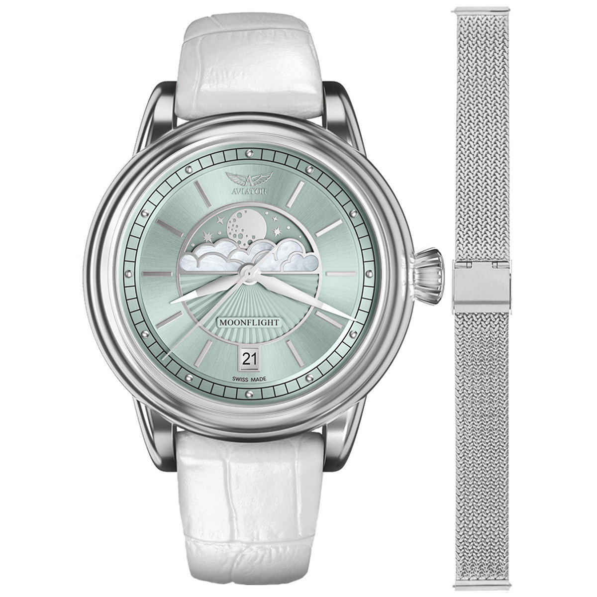 Właśnie zrecenzowałem Zegarek Damski Aviator V.1.33.0.261.4.WM-SET srebrny