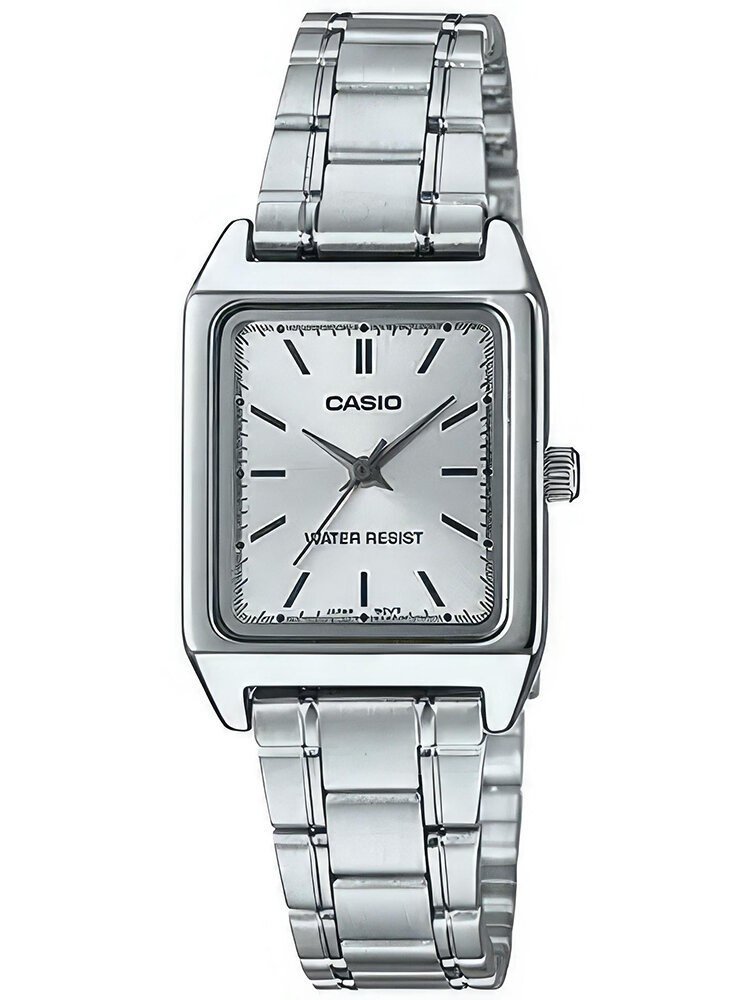 Zegarek CASIO LTP-V007D-7E wyróżnia się elegancją prostokątnej koperty i minimalistycznym designem. Jego niezawodność oparta jest na precyzyjnym japońskim mechanizmie kwarcowym, cenionym w świecie zegarmistrzowskim za doskonałą dokładność.
