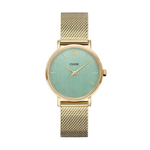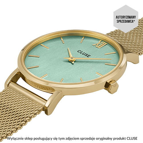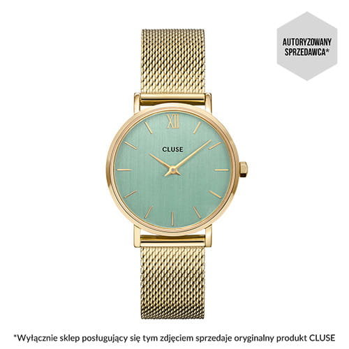 Model wykonany z wysokiej jakości stali szlachetnej. Koperta w kolorze złotym została doskonale zestawiona ze złotą bransoletą typu mesh. Uzupełnieniem minimalistycznego modelu jest zielona tarcza ozdobiona złotymi indeksami, które sprawiają, że zegarek jest czytelny i subtelny. Wodoszczelność na poziomie 3 ATM chroni mechanizm przed przypadkowymi zachlapaniami typu mycie rąk czy deszcz.