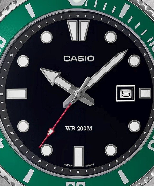 Męski zegarek Casio Classic MDV-107D-3AVEF spodoba się miłośnikom klasycznej kolorystyki z nowoczesnymi akcentami. Czarna tarcza z datownikiem dnia miesiąca posiada także powłokę luminescencyjną Neobrite na znacznikach. Model pracuje w oparciu o mechanizm kwarcowy z 3-letnią żywotnością baterii. Wodoszczelność wynosi 20 ATM.