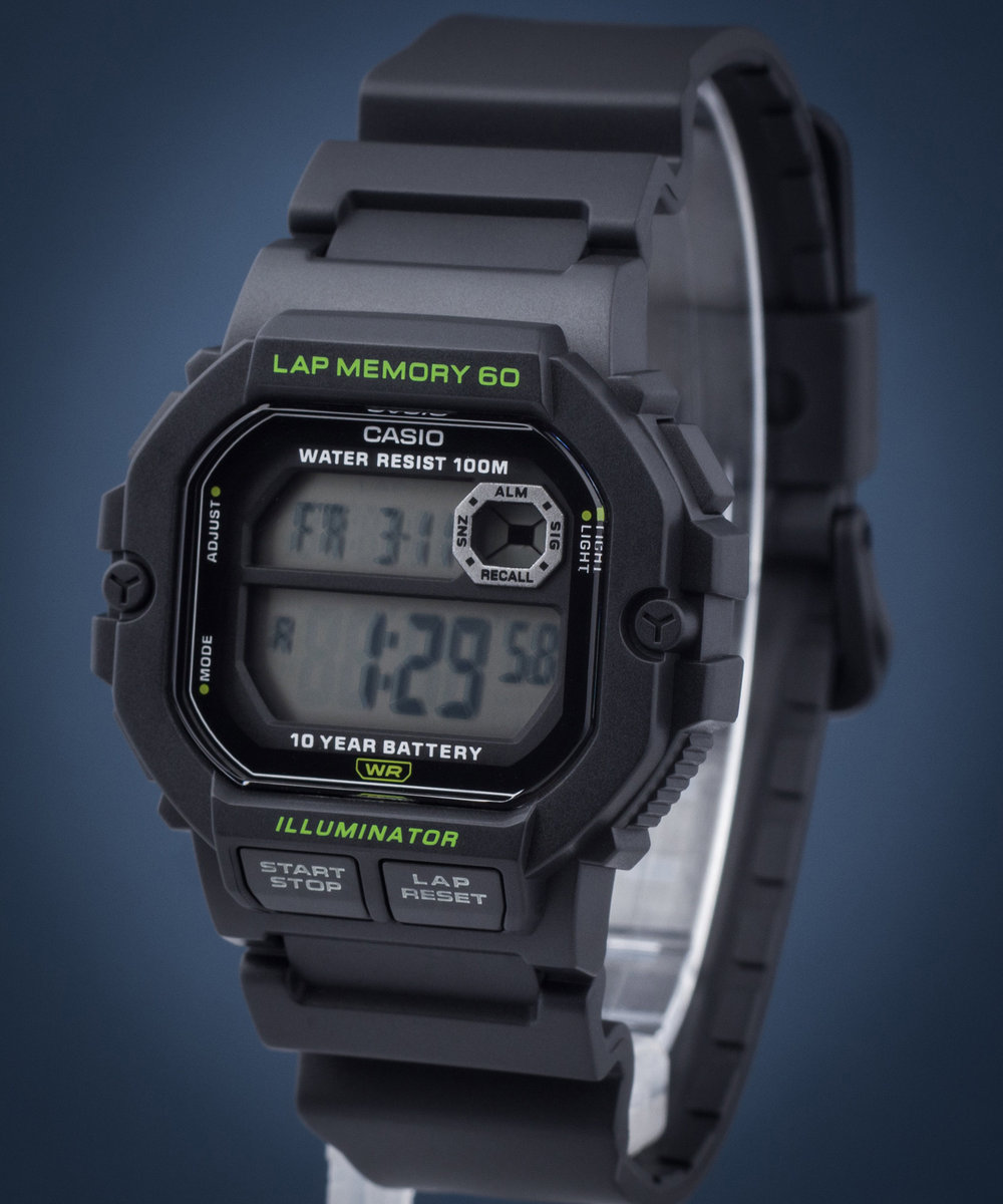Casio Runner WS-1400H-1AVEF to męski zegarek o sportowej stylistyce. Posiada funkcje, takie jak: podświetlenie LED, czas w drugiej strefie czasowej, stoper - 1/100 sek. - 100 min, pamięć stopera 60, timer - 1/1 min. - 24h, 3 multialarmy, funkcję drzemki, sygnały przycisków on/off, kalendarz automatyczny oraz format 12-/24-godzinny. Model jest utrzymany w klasycznym kolorze czarnym. Wodoszczelność oszacowano na poziomie 10 ATM.